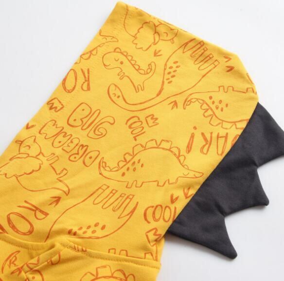 カラフルで明るいカラーと恐竜のイラストがキュートなロンパース。