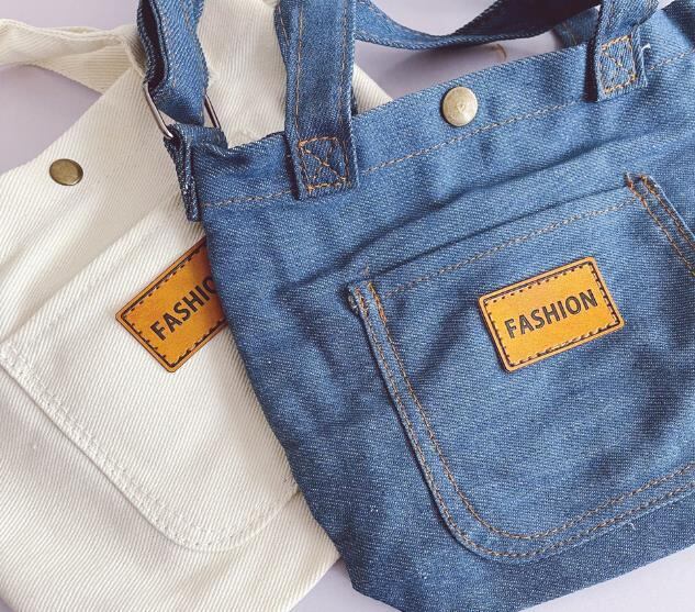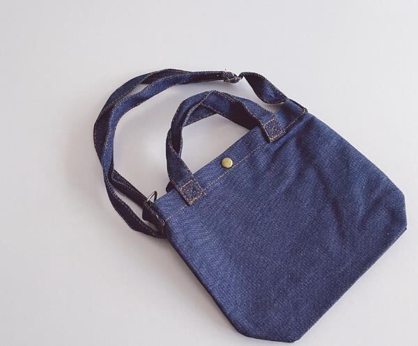手提げにもショルダーにもなる2WAYタイプのデニムバッグ。