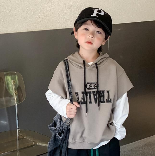 重ね着風パーカー 男女兼用90-140cm