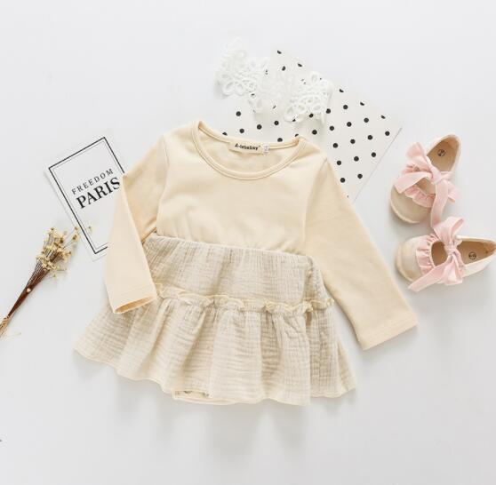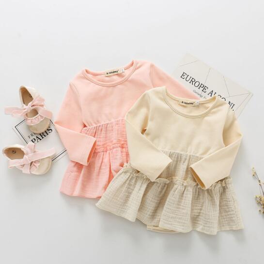 ワンピースデザイン風ベビーロンパース 女の子 66-100cm