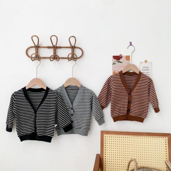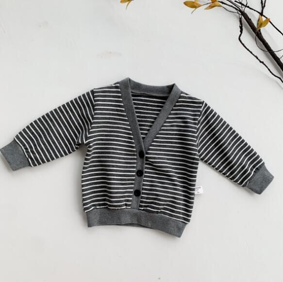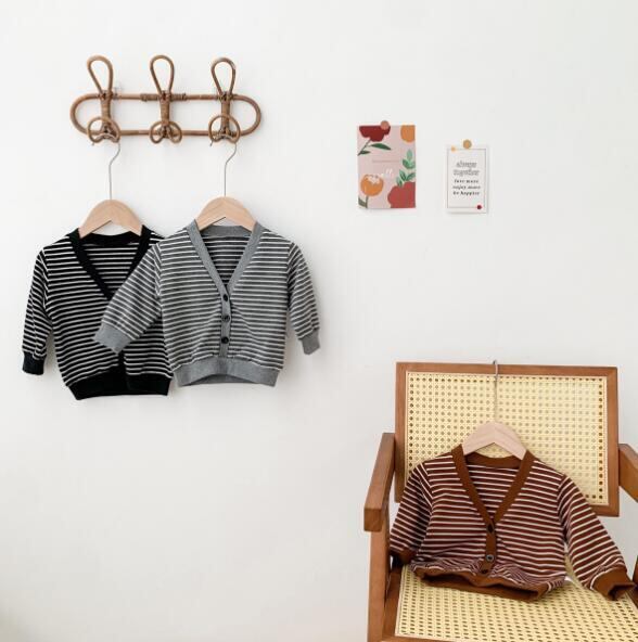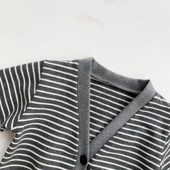 Vネックボーダーカーディガン 男女兼用 73-100cm