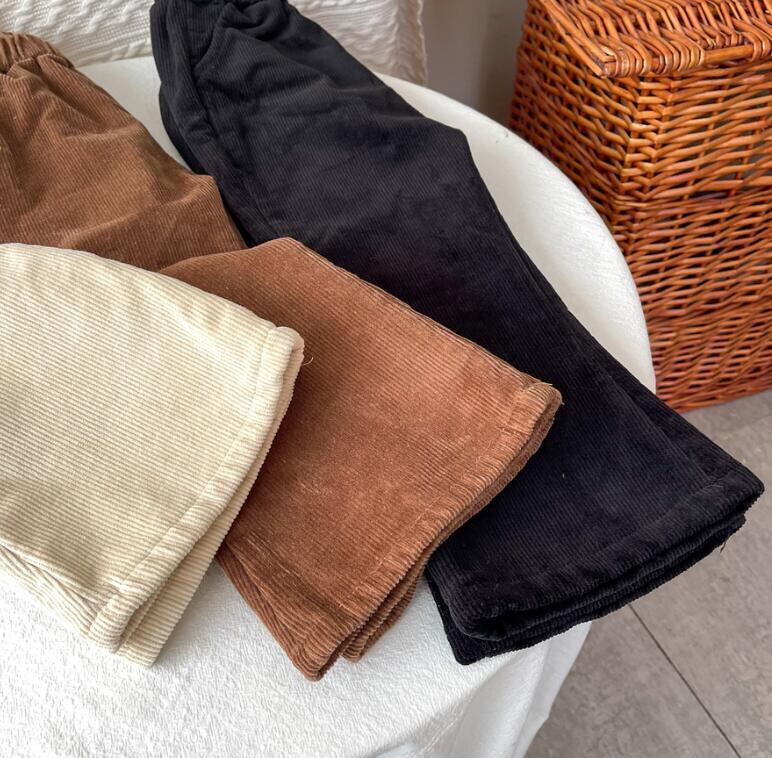 表はコーデュロイで裏は起毛なので、冬も暖かく過ごせますよ!