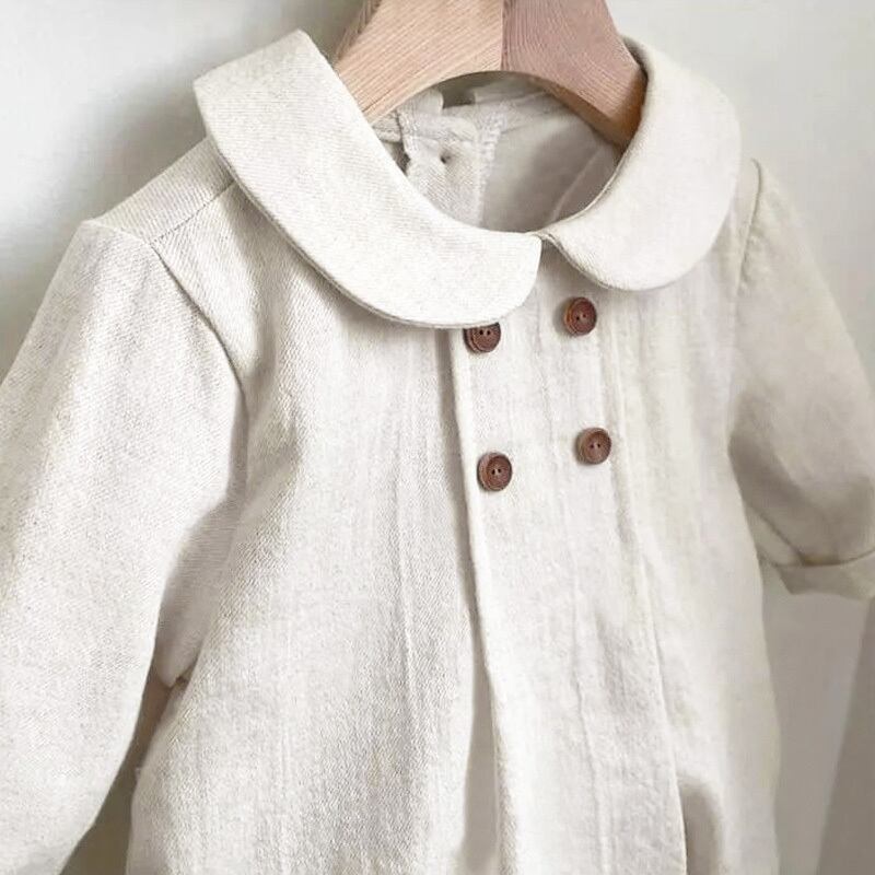 丸襟が可愛らしいロンパース。