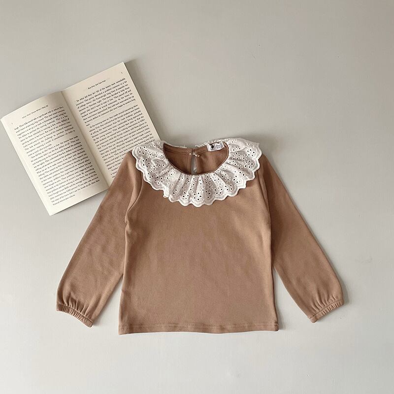キュートで可愛らしいフリル襟トップス、お子様にぴったりの一枚です。フリルの襟がさりげないアクセントになり、おしゃれ度もアップします。カラーバリエーションも豊富で、お子様の好みに合わせて選ぶ楽しみもありますね。一枚でコーディネートが決まるので、忙しい朝でも手軽におしゃれができます。